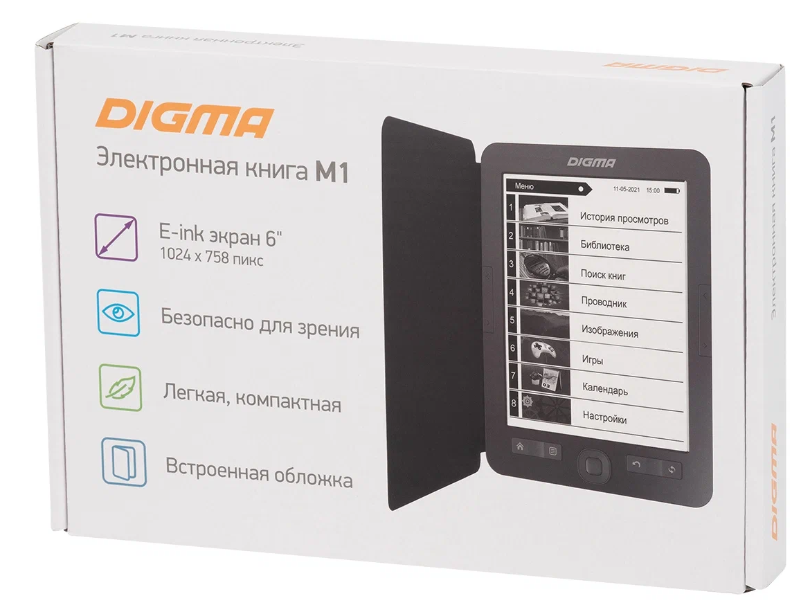 Сохранить6" Электронная книга Digma M1 1024x758 E-ink, темно-серый c чехлом интересное: