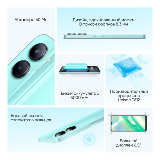 Смартфон REALME RMX3624 (С33) 4 + 64 ГБ цвет: голубой (AQUA BLUE)