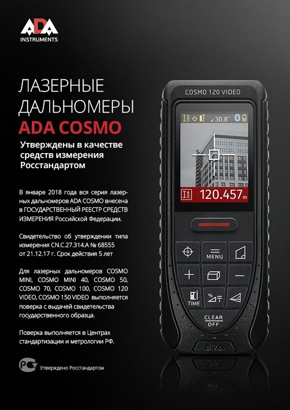 СохранитьЛазерный дальномер ADA Cosmo 120 video с поверкой А00523 интересное: