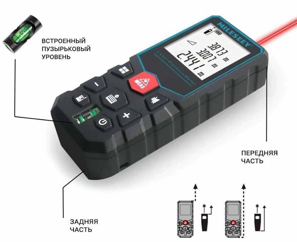 Лазерный дальномер 40 метров дальность MILESEEY Лазерная рулетка интересное: