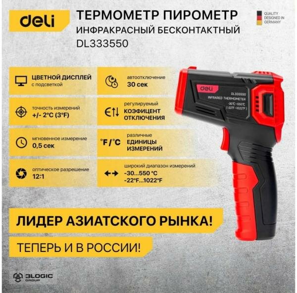 DELI инфракрасный пирометр (термометр) с цветным экраном DL333550 (диапазон изм. -30-550°C или -22-1022?) 102971