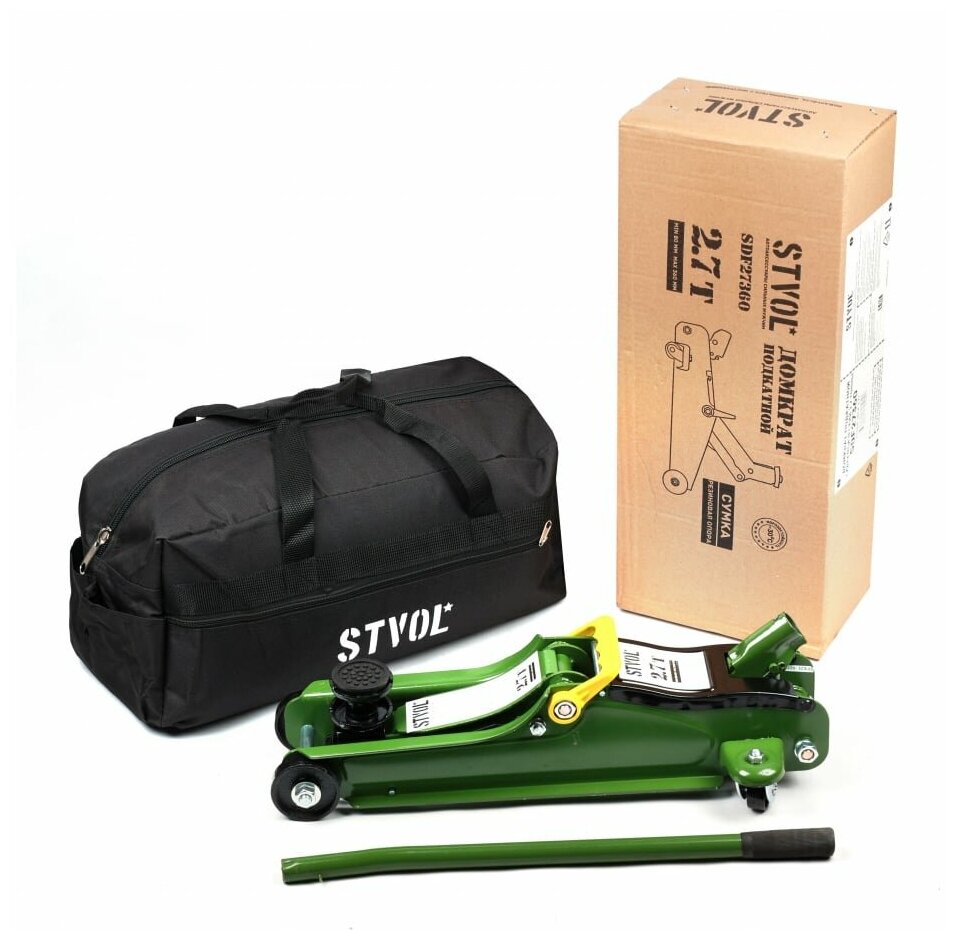 Домкрат автомобильный подкатной гидравлический STVOL SDF27360, 2,7 т, высота подъема 8-36 см.
