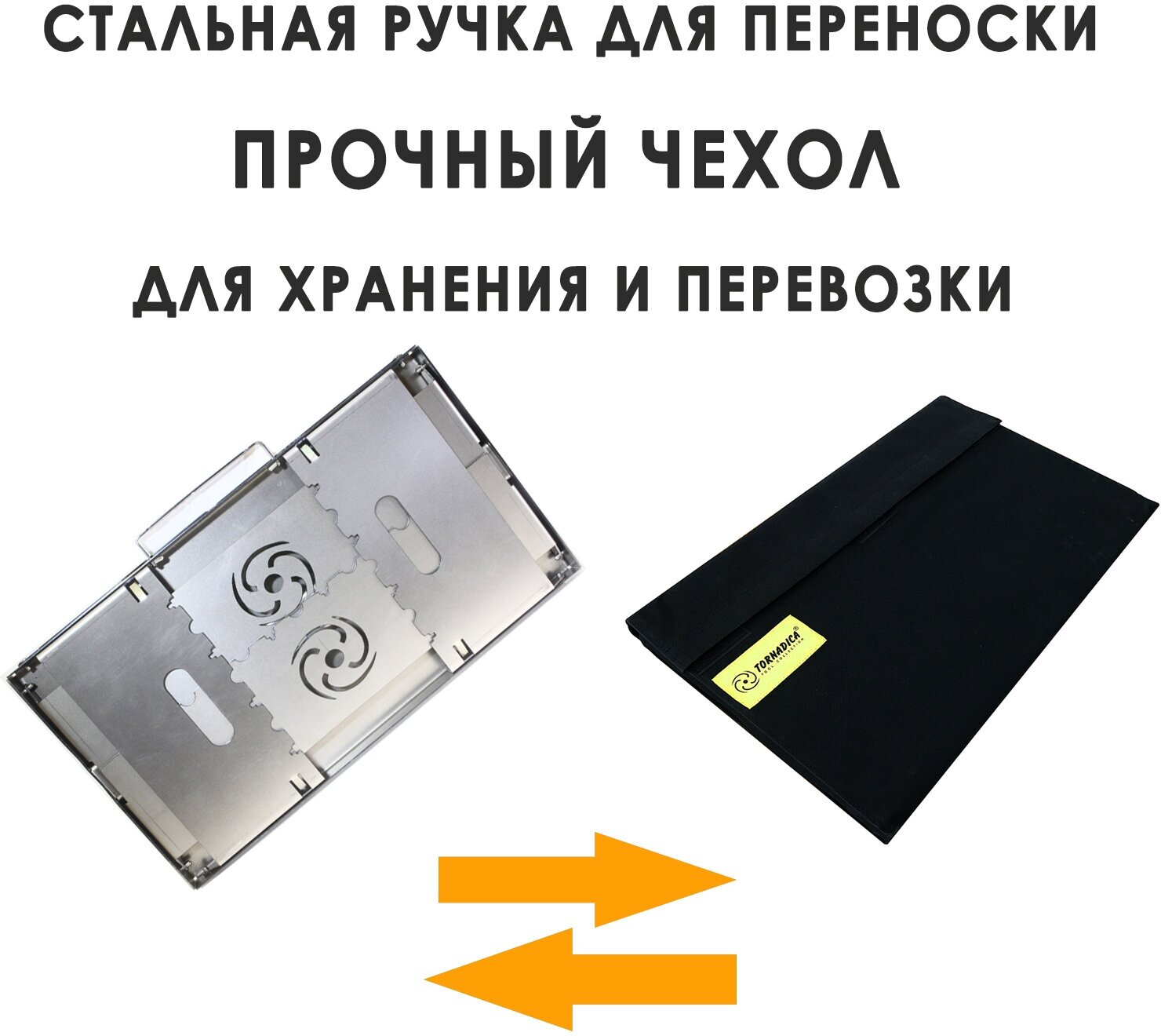 Мангал складной Торнадика с сумкой из высокопрочной стали с аэро тоннелем в днище мангала (Tornadica)