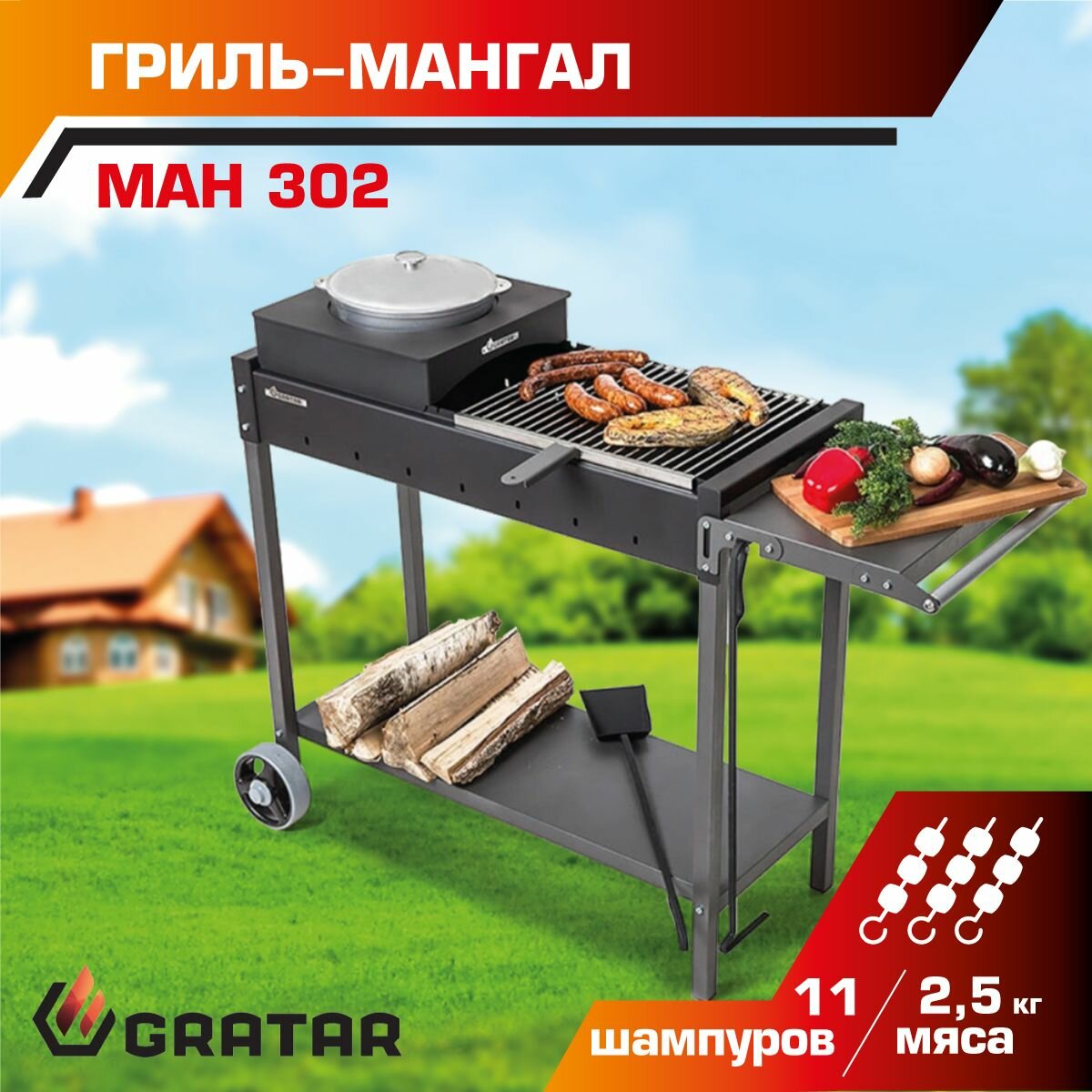Мангал Gratar МАН 302, 52х131.5х79.7 см, сталь, 3 мм 52 см 131.5 см 79.7 см 25.2 кг 3 мм