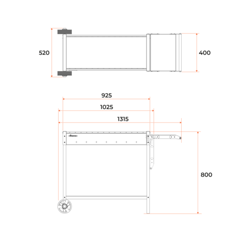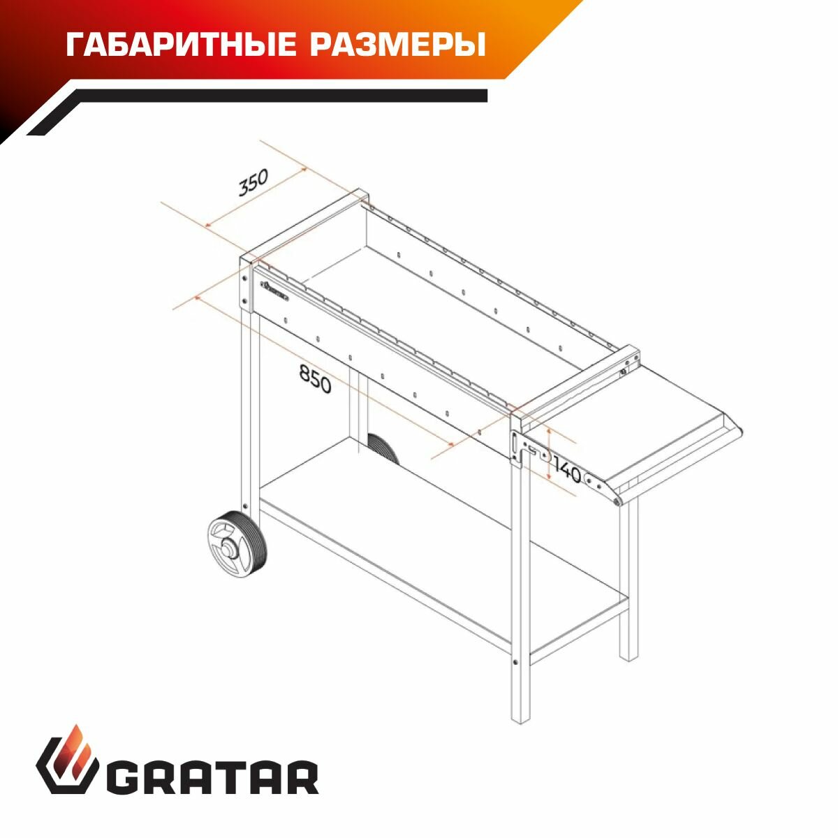 Мангал передвижной на колёсах с боковой полкой GRATAR МАН 302