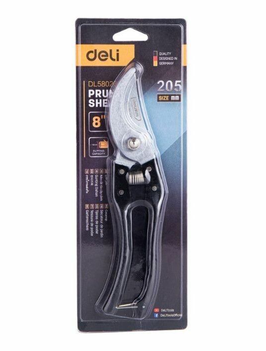 Секатор Deli DL580200, сталь 65 MN, черный/серебристый