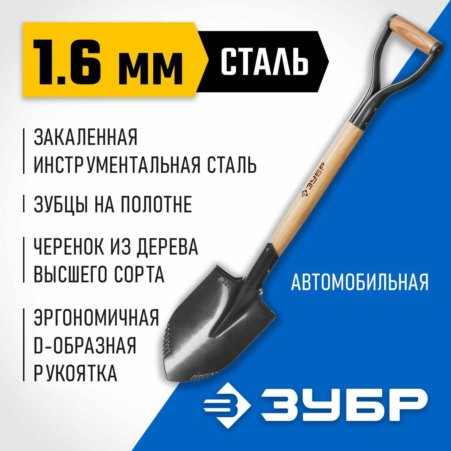 Автомобильная лопата ЗУБР Профессионал Беркут с деревянным черенком, металлическая рукоятка 4-39506
