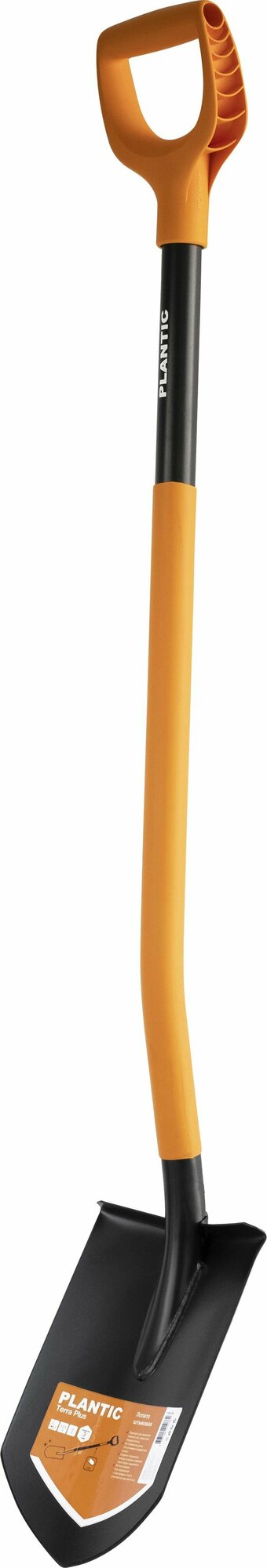 Лопата штыковая Plantic Terra Plus 11011-01 для копки земли, с удлиненным черенком, эргономичной ручкой в форме буквы D, черная/оранжевая
