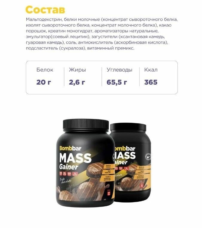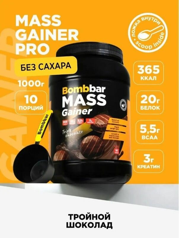 Гейнер Bombbar Pro Тройной шоколад 1000г / Bombbar MASS Gainer интересное: