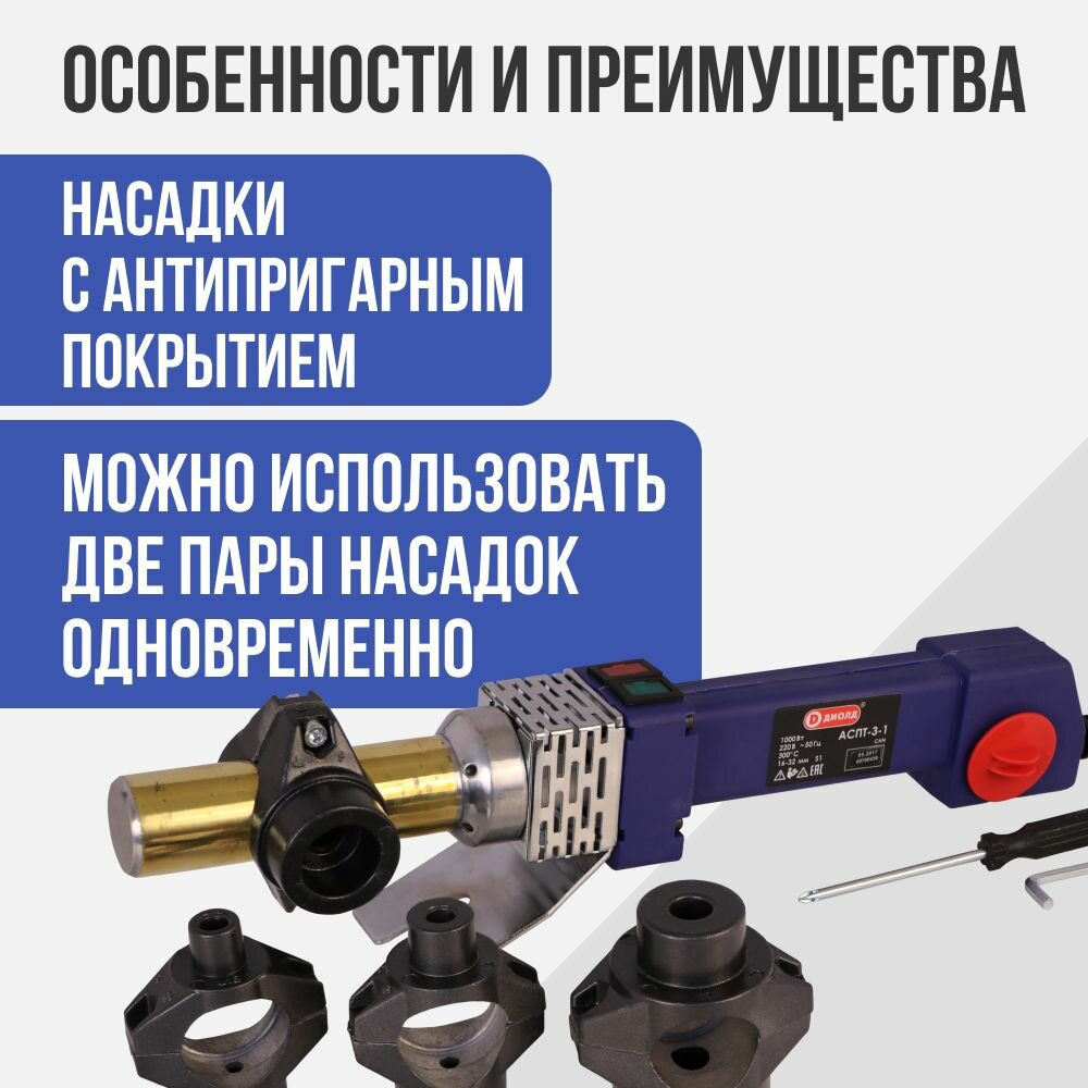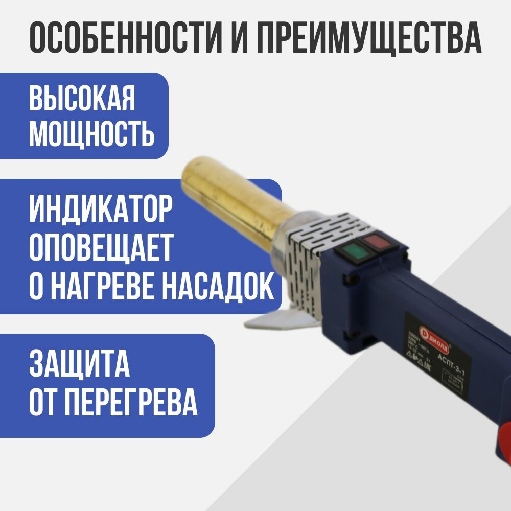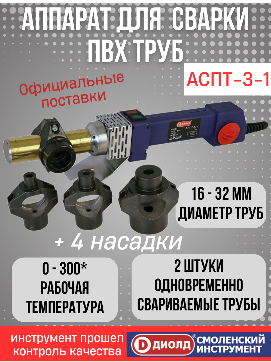 Аппарат для сварки полипропиленовых труб диолд АСПТ-3-1 (1000Вт) / аппарат для соединения пластиковых, ПВХ труб, 4 насадки (16-32мм), производитель Россия