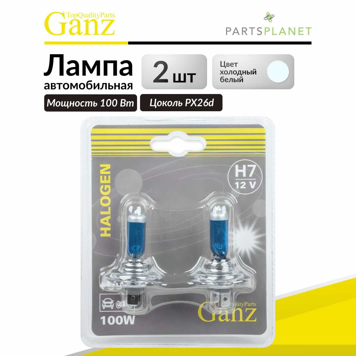 Лампа 12v h7 100w +50 px26d 5000k ganz 2 шт. блистер gip06057, GANZ GIP06057 (1 шт.)