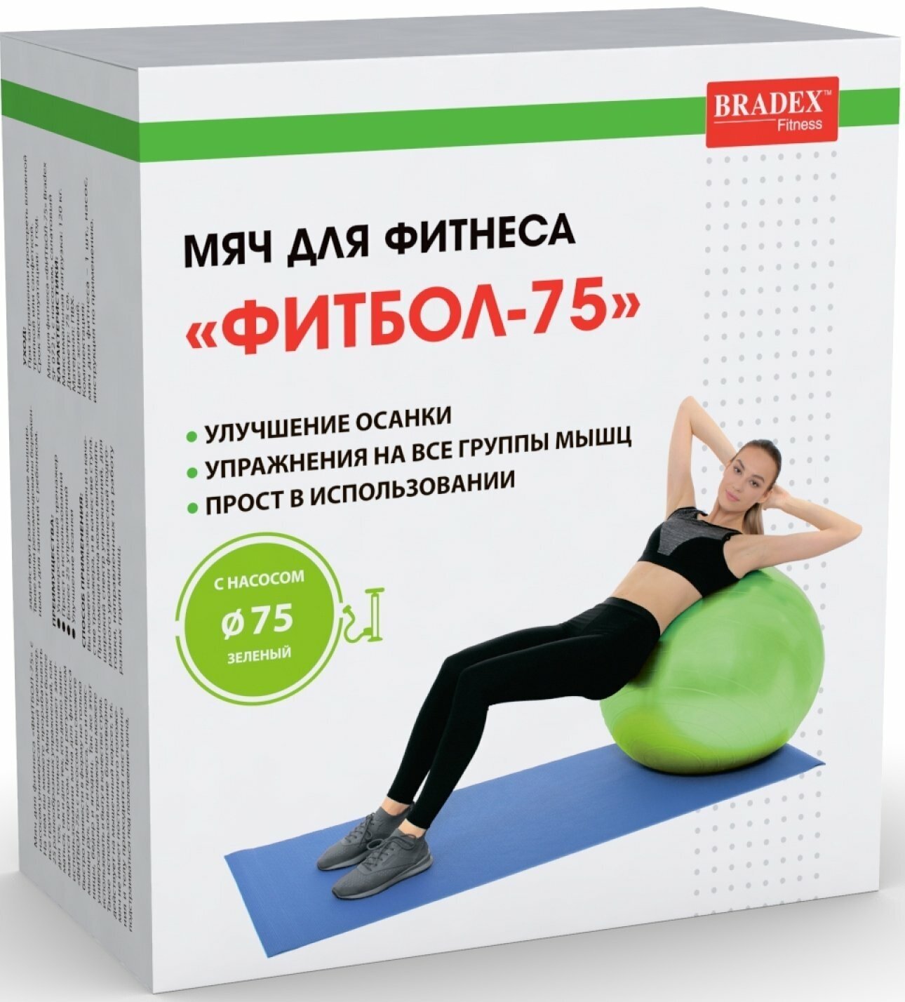 Мяч для фитнеса «ФИТБОЛ-75» Bradex с насосом, салатовый