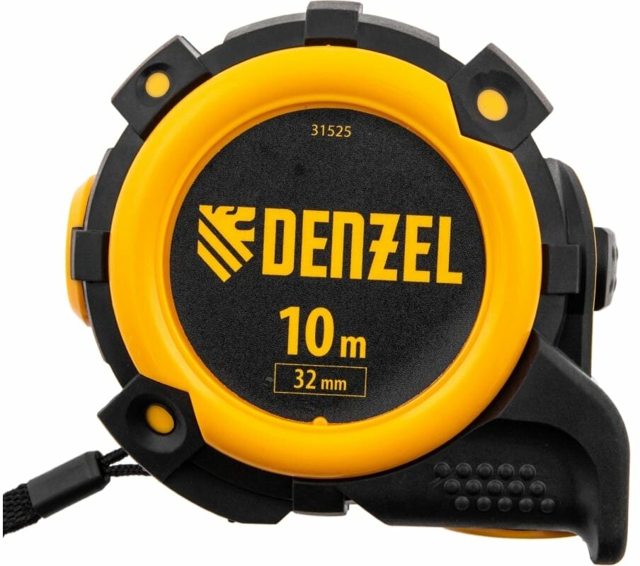 Рулетка 10м х 32мм, автоматич. фиксац., нейлон. покрытие, магнит. зацеп, двухстор. разметка Denzel 31525