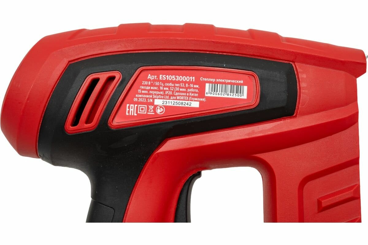 Степлер электрический WORTEX ES 1053 в кор. 80 скоб/гвоздей в мин (гвозди макс. 16 мм, скобы 8-16, тип скоб 53, рег. силы удара) (ES105300011)