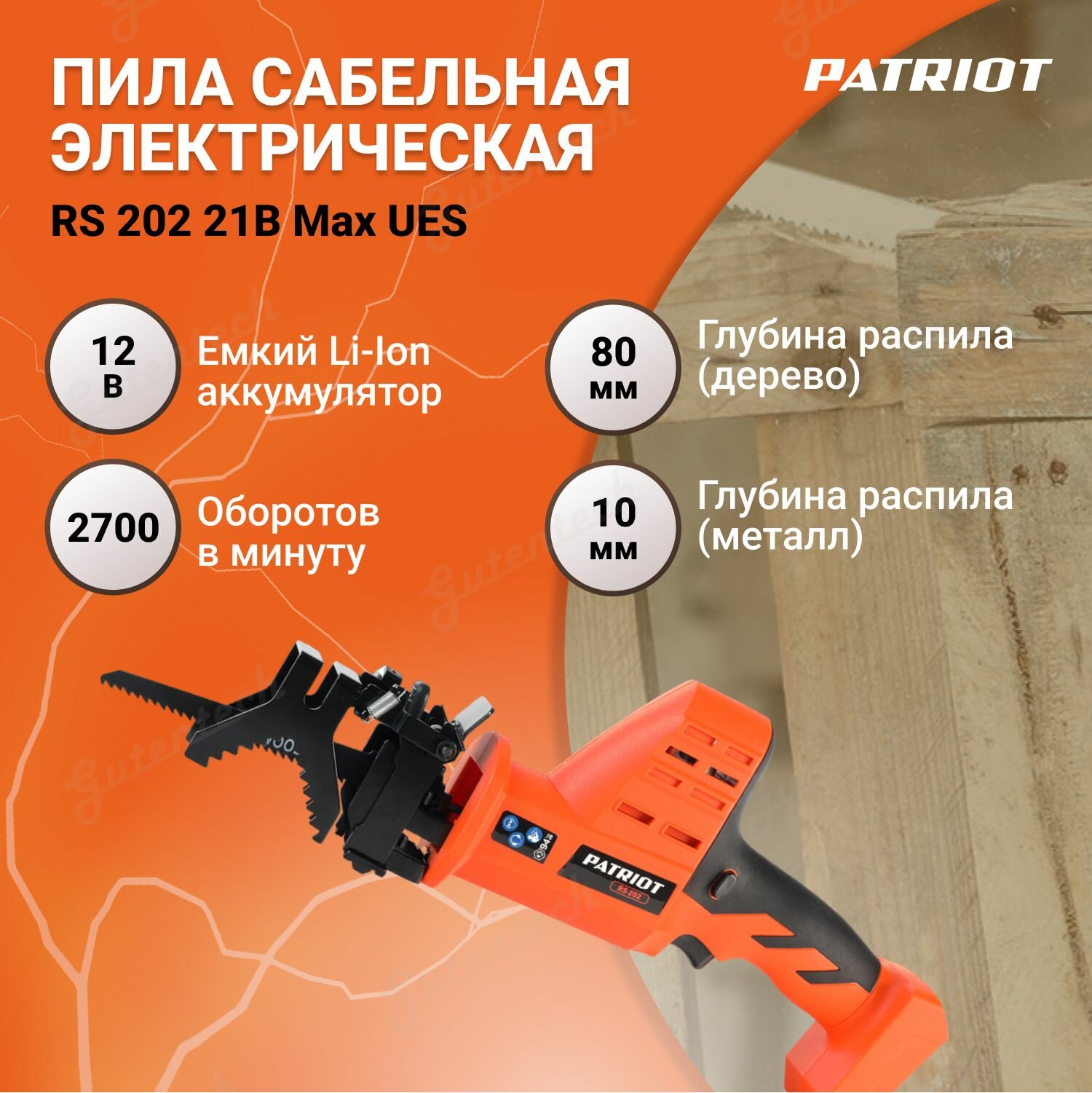 PATRIOT Сабельная пила Patriot RS 202 21В UES аккум.