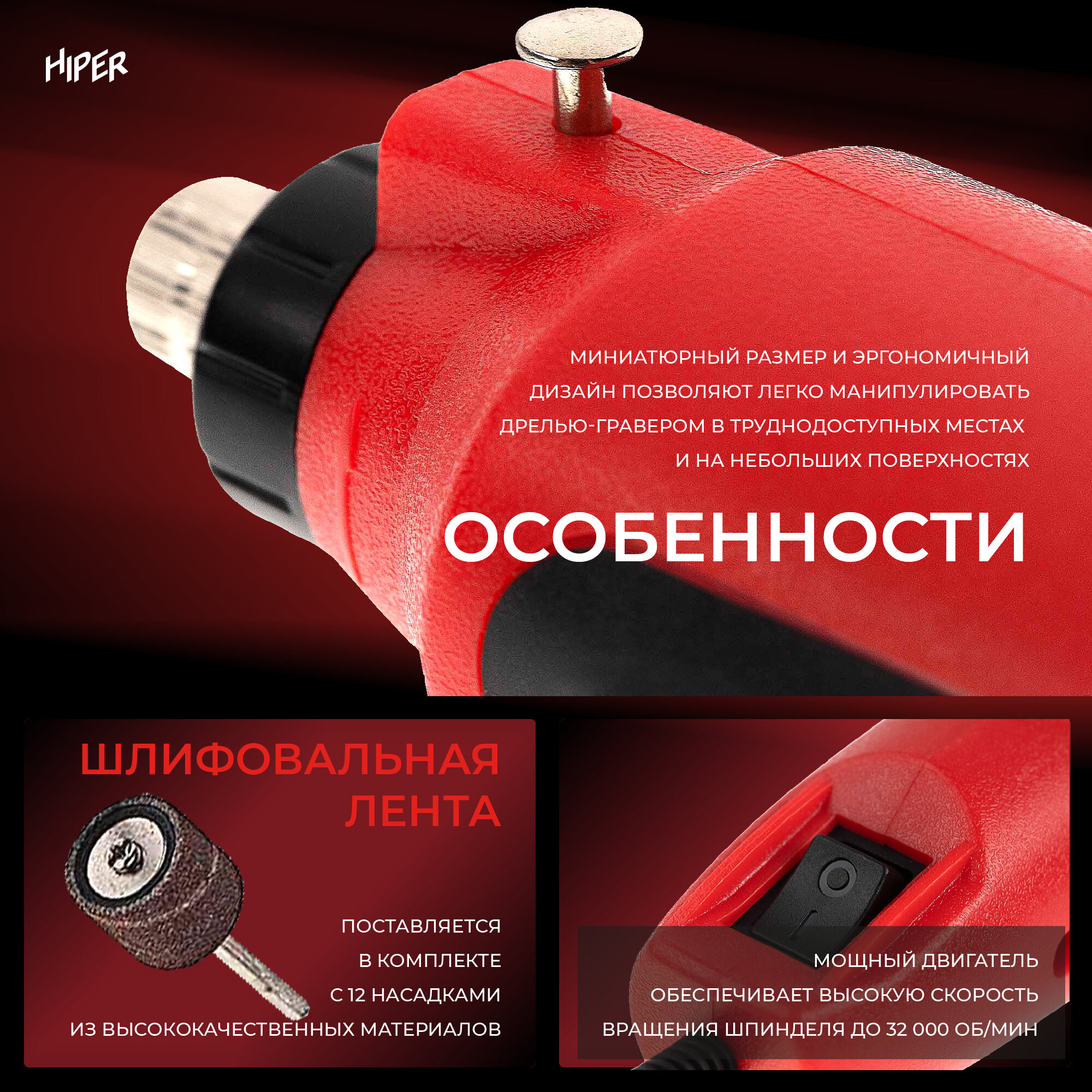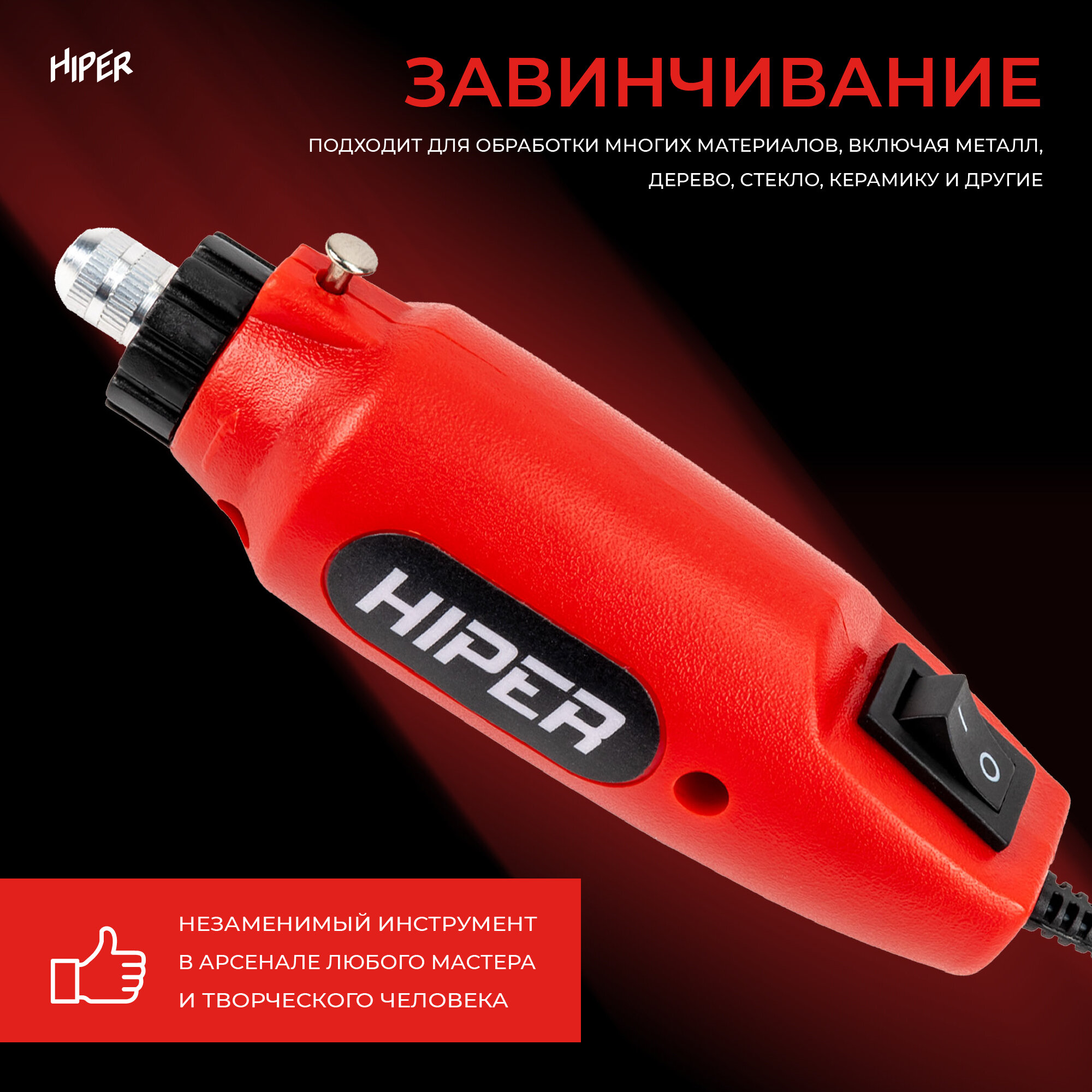 Гравер электрический HIPER HMD12B, по металлу, дереву, 80 аксессуаров интересное: