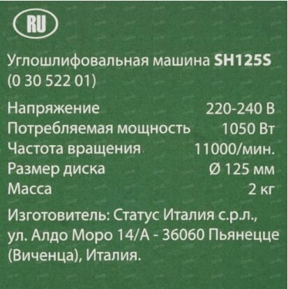 SH-125 S угловая шлифмашина STATUS