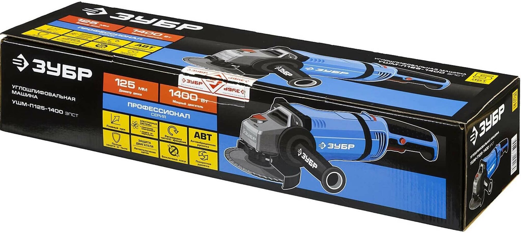 УШМ ЗУБР УШМ-П125-1400 ЭПСТ, 1400 Вт, 125 мм, без аккумулятора