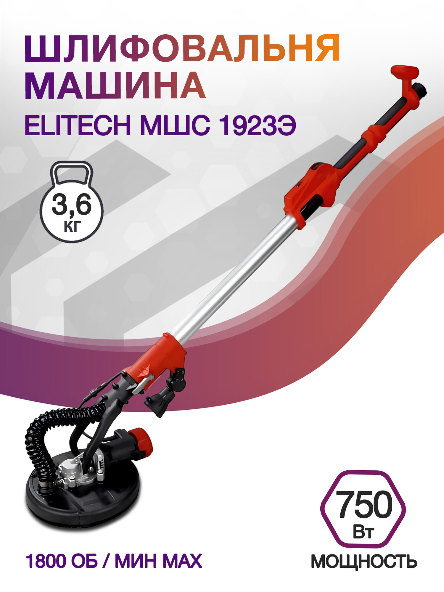 Шлифмашина для стен и потолков ELITECH МШС 1923Э, 750 Вт