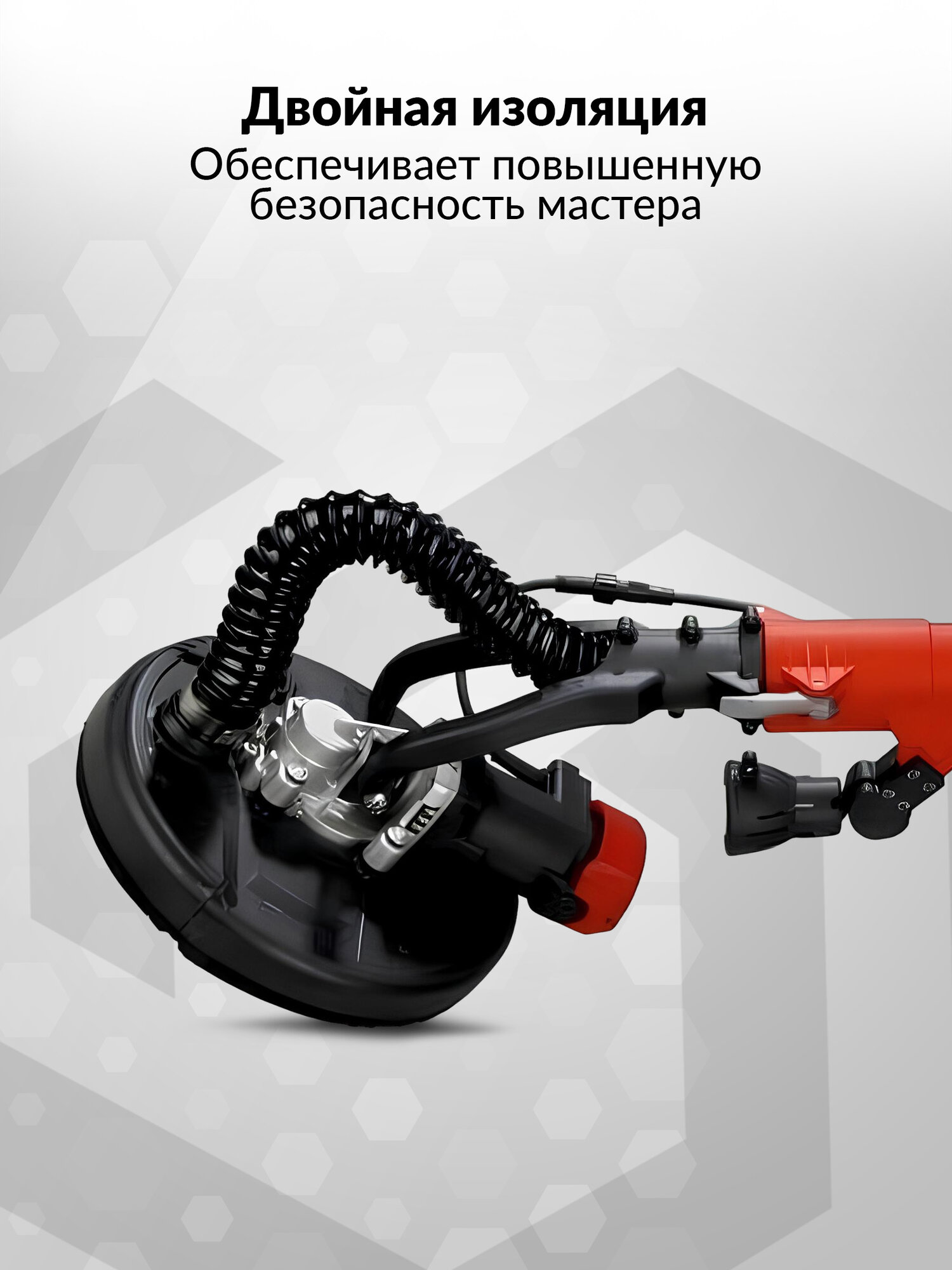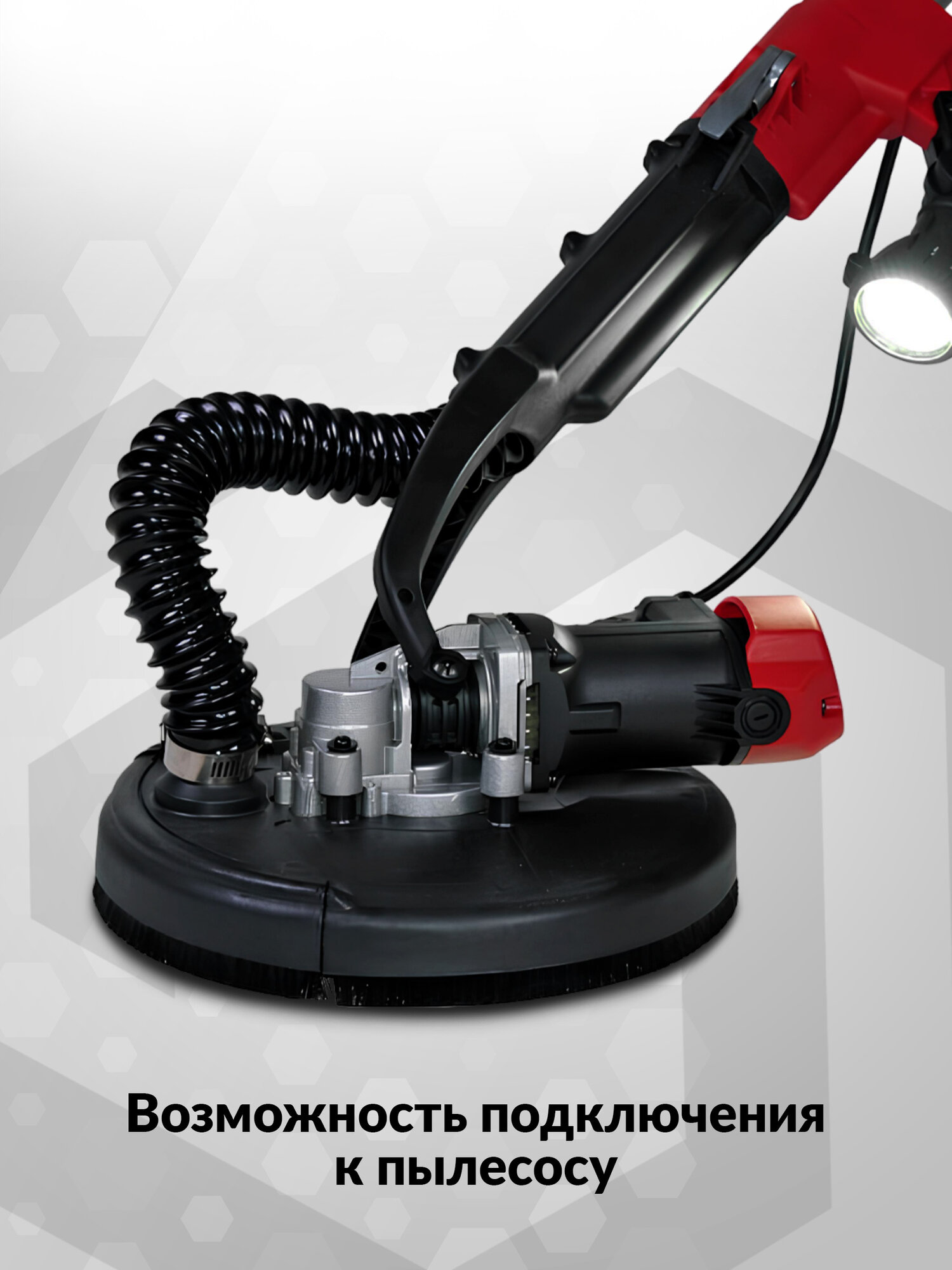 Шлифмашина для стен и потолков, жираф FANG TOOLS 225мм с подсветкой и встроенным пылесосом + 5 шлифовальных кругов