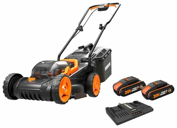 Газонокосилка аккумуляторная Worx WG779E, 34 см, 40 В, АКБ 2 x 2,5 А*ч, двойное ЗУ 2 x 1А A, коробка