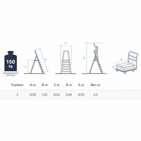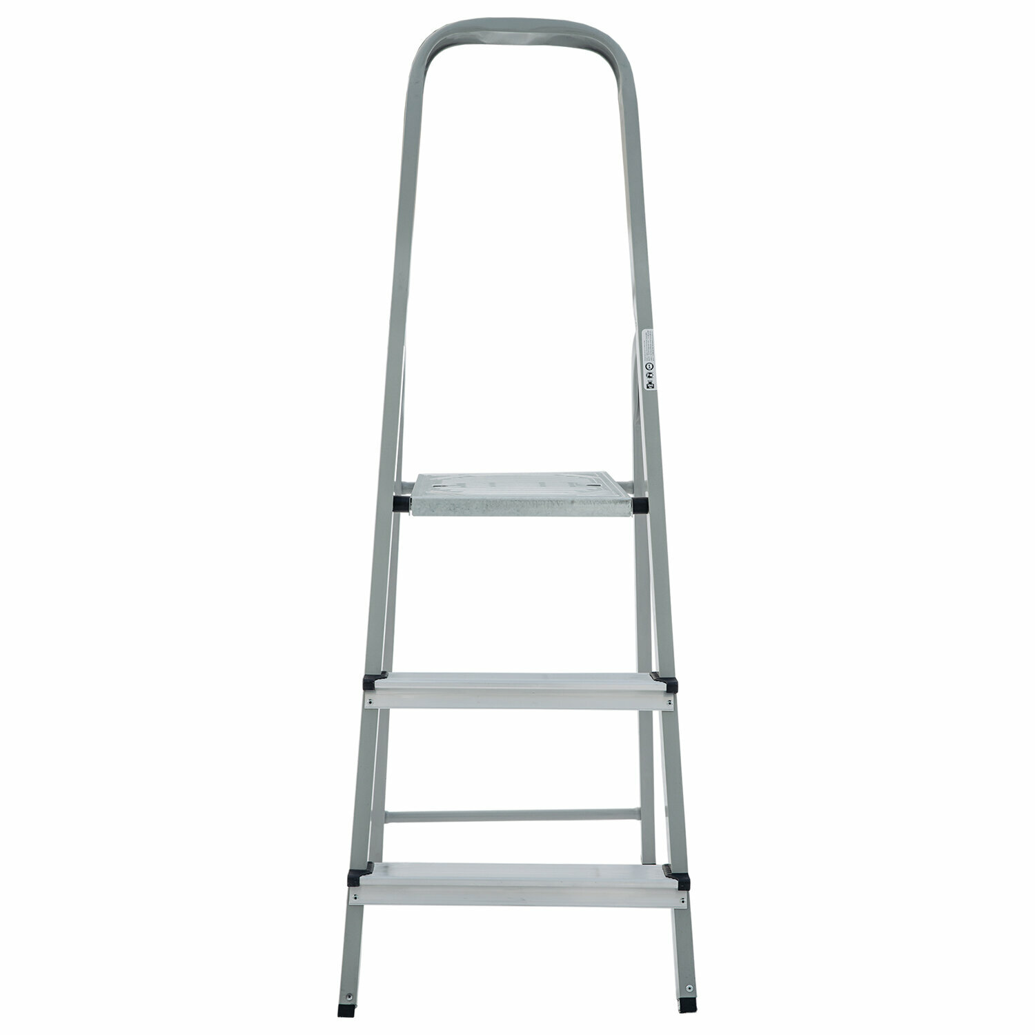 Стремянка сталь/алюминий 3 ступени, высота площадки 0.59м, дуга 0.6м, площадка 26×26см, до 150кг, вес 4.5кг, новая высота