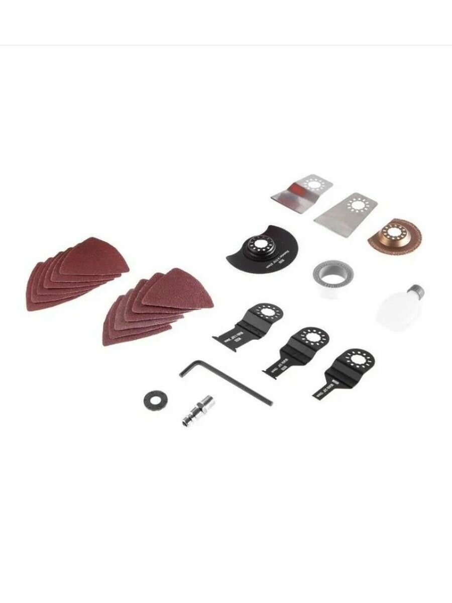 | Комплектация | наждачный лист - 12 шт., полукруглые лезвия – 2 шт., лезвия скребки – 5 шт., насадка для наждачных листов, переходник для аксессуаров Bosch, ключ, евроадаптер |