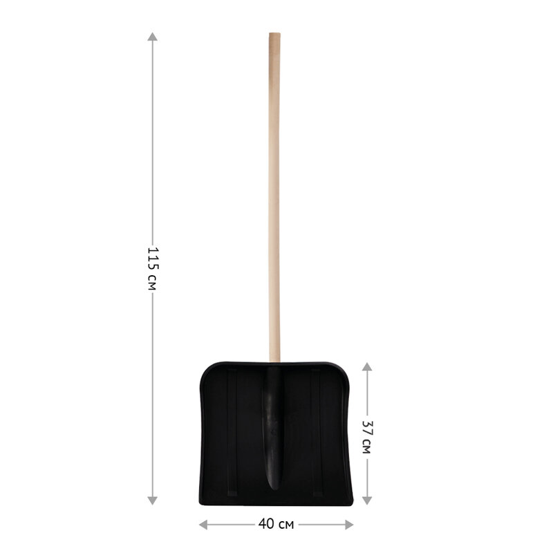 Лопата снеговая Vega, пластиковая, ковш 40*37см, с деревянным черенком, без ручки и алюминиевой планки