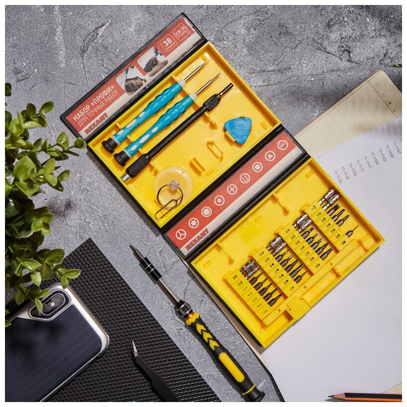 Набор инструментов для точных работ, ремонта iPhone и Android, 38 предметов в боксе REXANT