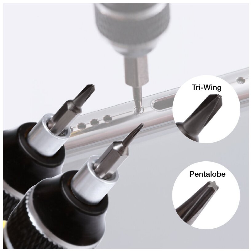 | Тип наконечника | Torx / tri-point (Y) / крестообразный / spanner (U) / шестиугольный (H) / Pentalobe / прямой |