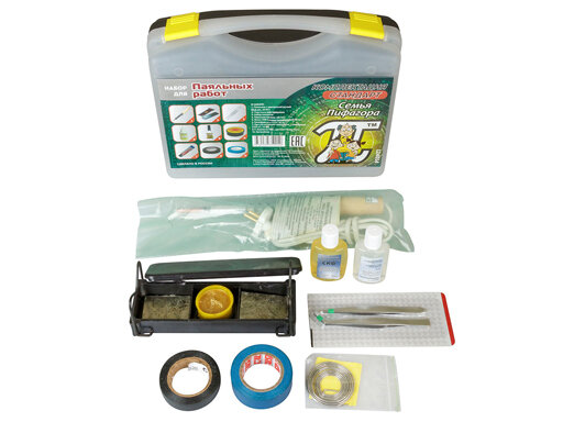 | Комплектация | органайзер, паяльник, подставка для паяльника, набор пинцетов, паяльная кислота, флюс скф, канифоль сосновая, пос-61, изолента 2 шт, инструкция |