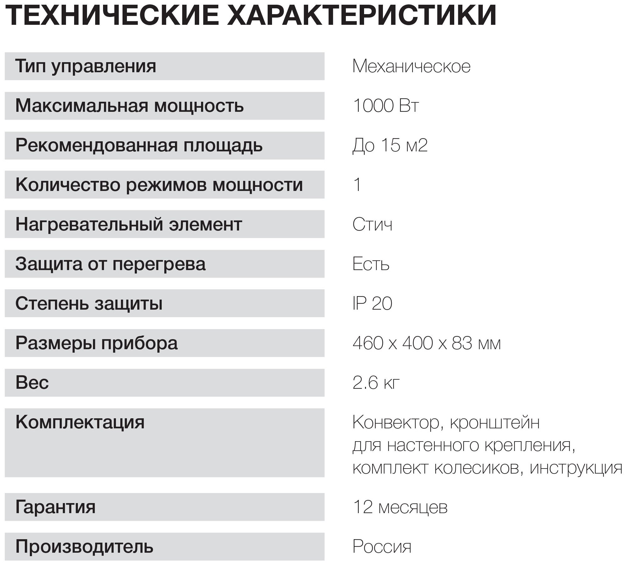 Конвектор Starwind SHV4510 белый, 1000 Вт, 15 м2, термостат