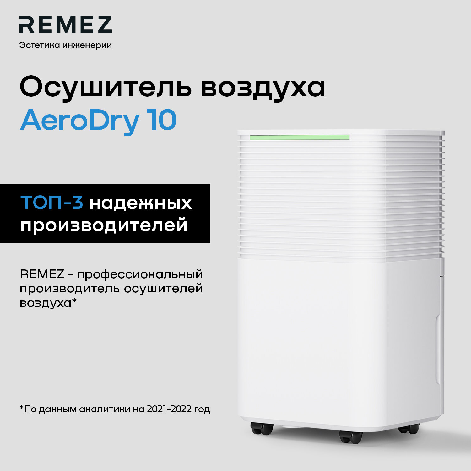 Осушитель воздуха REMEZ Aerodry, RMD-311N, 10 л/сут, сенсорный, 30 кв. м