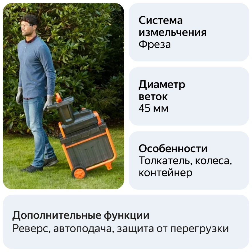 | Плюсы: | Высокая производительность, достаточно тихий, максимальный размер веток для данного типа измельчителя, удобен в передвижении по участку за счёт колёсиков, не тяжелый, 5 лет гарантии от производителя после регистрации! Замечательный и удобный! У нас веток в промышленных масштабах на участке и он справляется! |