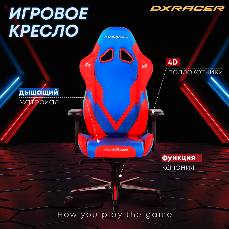 Кресло геймерское DXRACER G8200 сине-красное (OH/G8200/BR, кожа-PU, 4D, мультиблок)