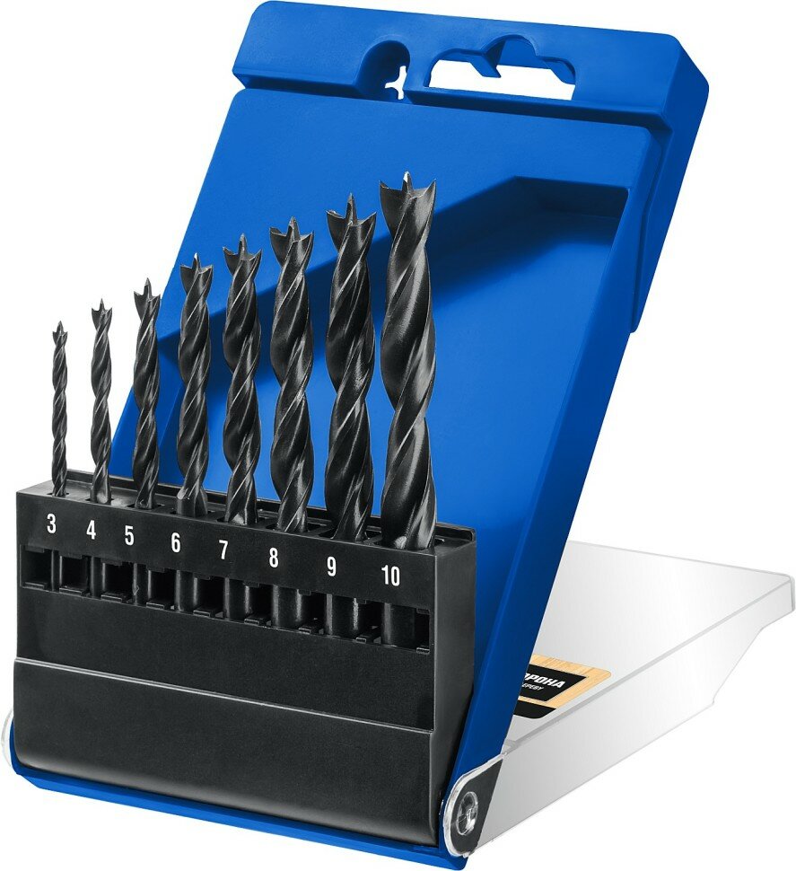 Купить ЗУБР 8 шт(3-4-5-6-7-8-9-10 мм), набор спиральных сверл по дереву, М-образная заточка ( 29421-H8_z01 )