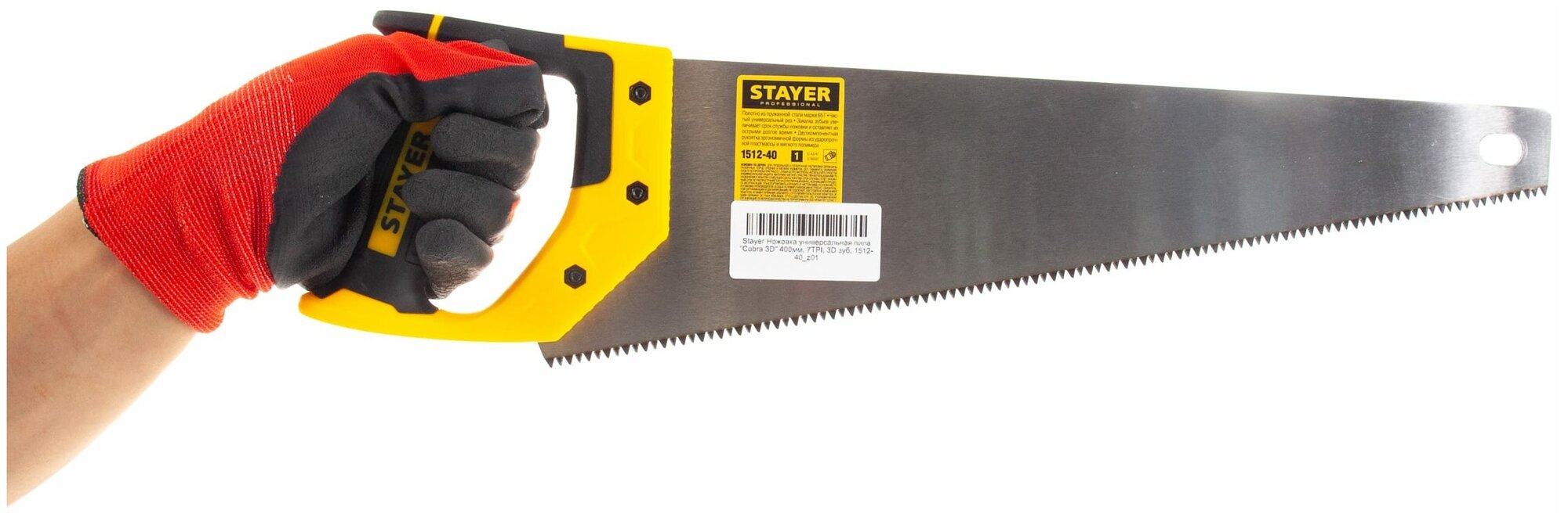 STAYER 7 TPI, 400 мм, ножовка универсальная (пила) COBRA 3D 1512-40_z01 Professional