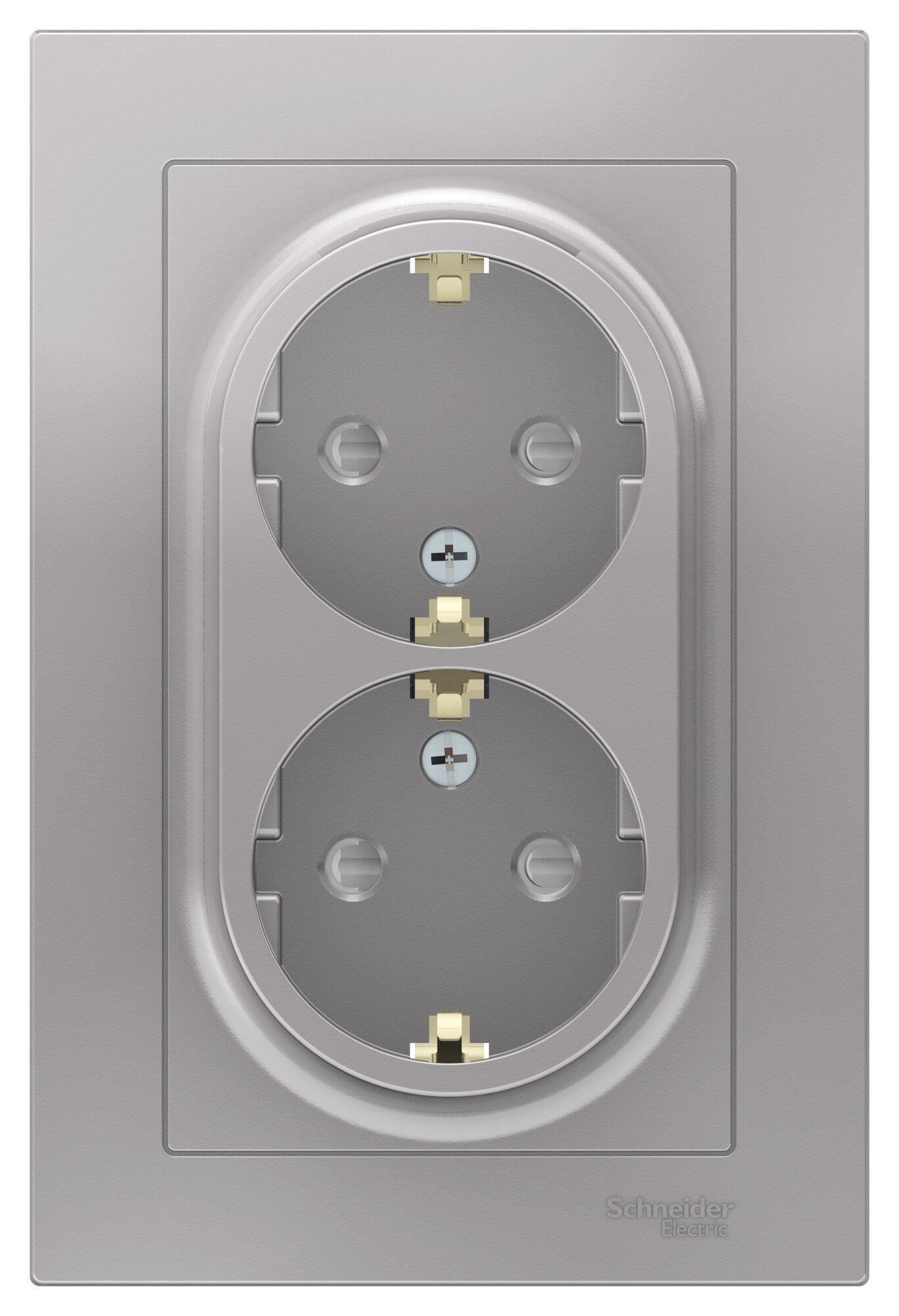 Systeme Electric ATLASDESIGN розетка двойная с заземлением со шторками, 16А, в сборе, алюминий ATN000326