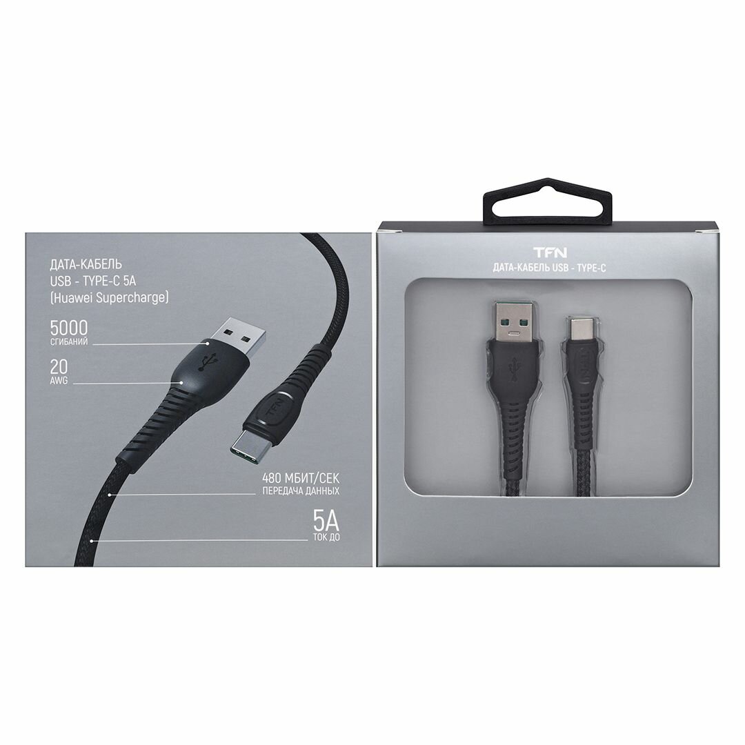Дата-кабель TFN USB - Type-C, FORZA, в нейлоновой оплетке, 5A, 1 м, черный интересное: