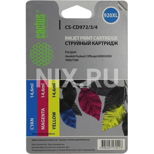 Картридж Cactus CS-CD972/3/4 №920XL голубой/желтый/пурпурный, для HP DJ 6000/6500/7000/7500