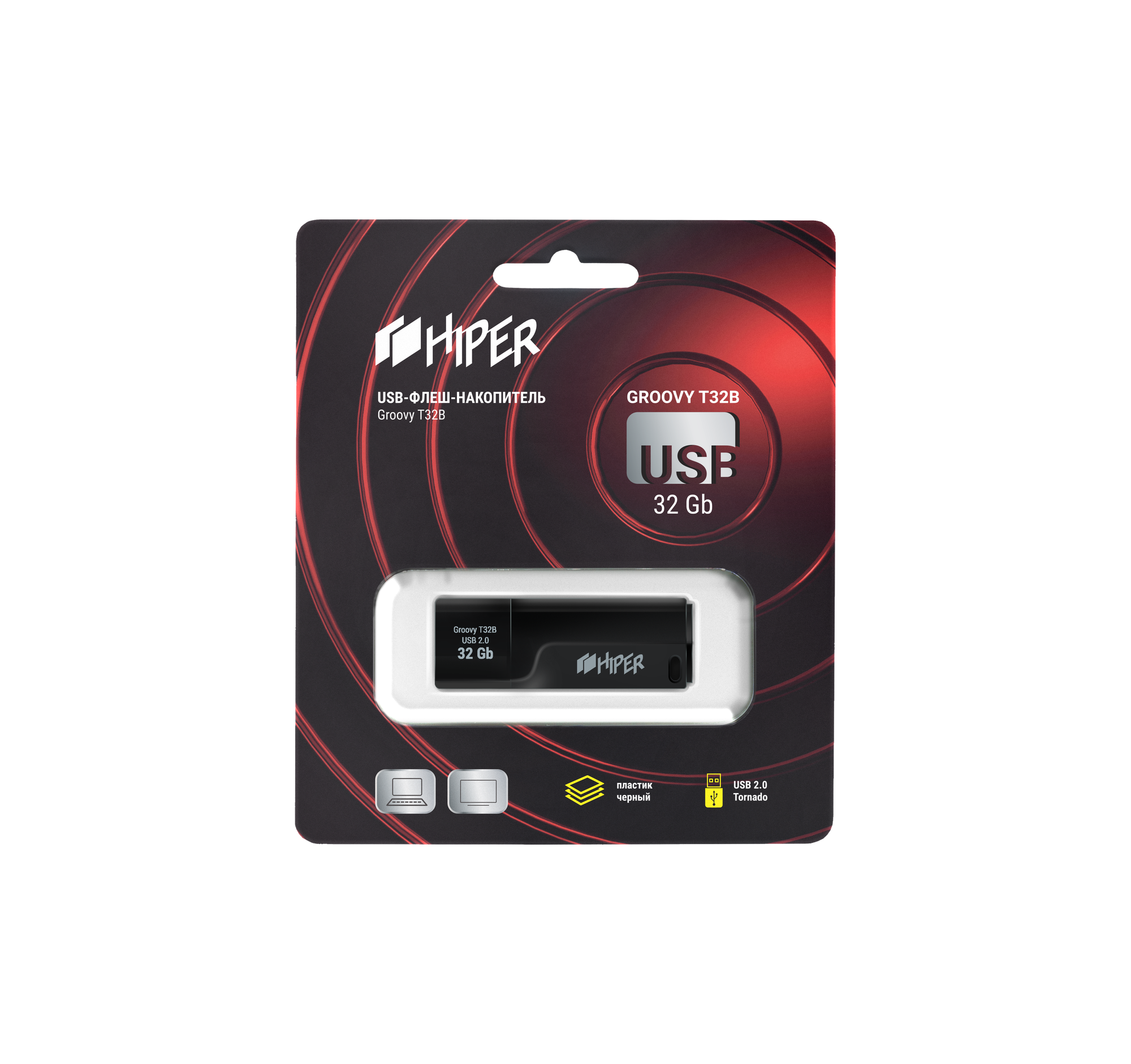 Накопитель HIPER USB2 Flash 32GB Hiper Groovy T, черный