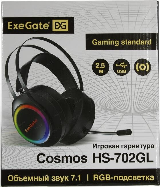 Игровая гарнитура ExeGate Cosmos Hs-702gl (объемный звук 7.1, длина кабеля 2.5м, RGB подсветка, USB