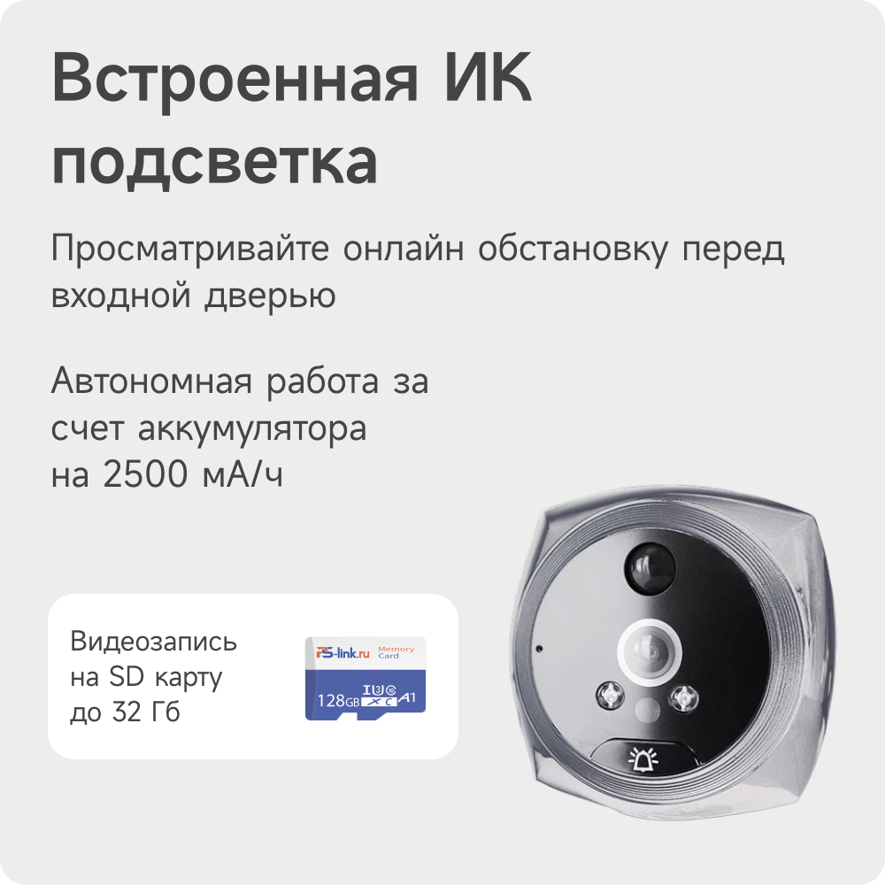 Видеоглазок в дверь с записью на SD карту, звонком и датчиком движения PS-link PDV-9 Silver интересное: