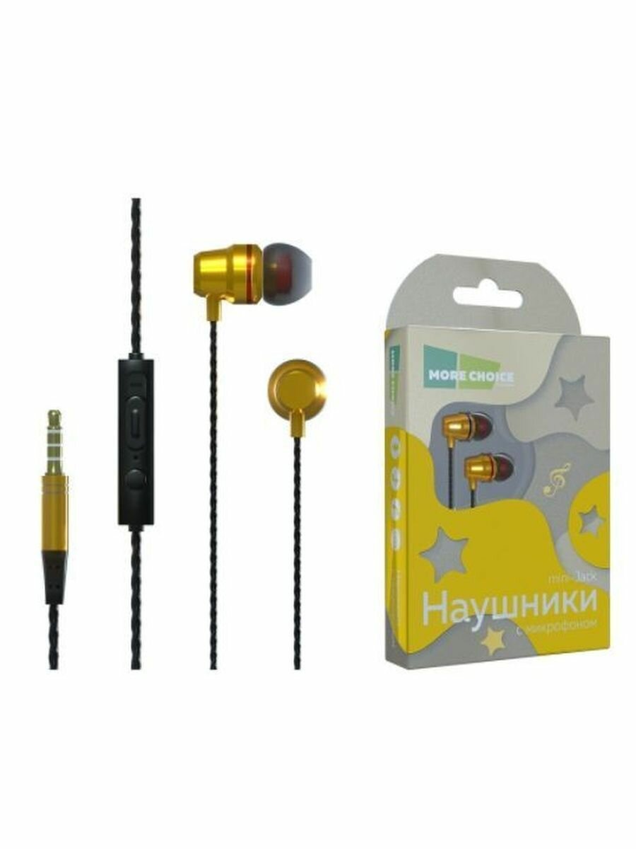 Наушники MORE CHOICE P71 проводные, вакуумные, 1,2м, черный/золото