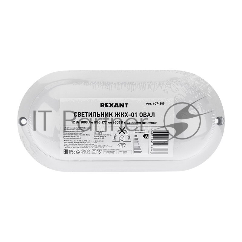 Купить Светильник светодиодный пылевлагозащищенный Rexant ЖКХ овальный 177 мм с датчиком движения, 12 Вт, 1000 Лм, 6500 К, IP65