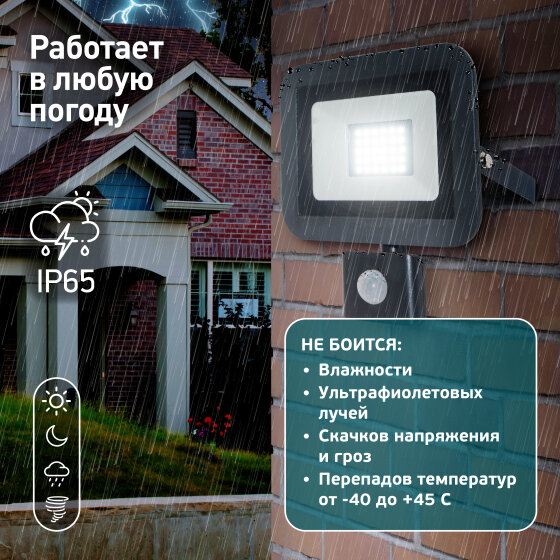 ЭРА LPR-041-2-65K-030 30Вт 2400Лм 6500К датчик движения регулируемый 135x148x45 Б0043586 .