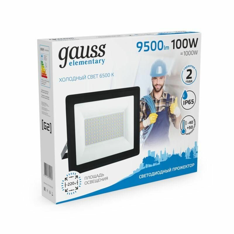 Прожектор Gauss Elementary 100W 9500lm 6500К 175-265V IP65 черный LED