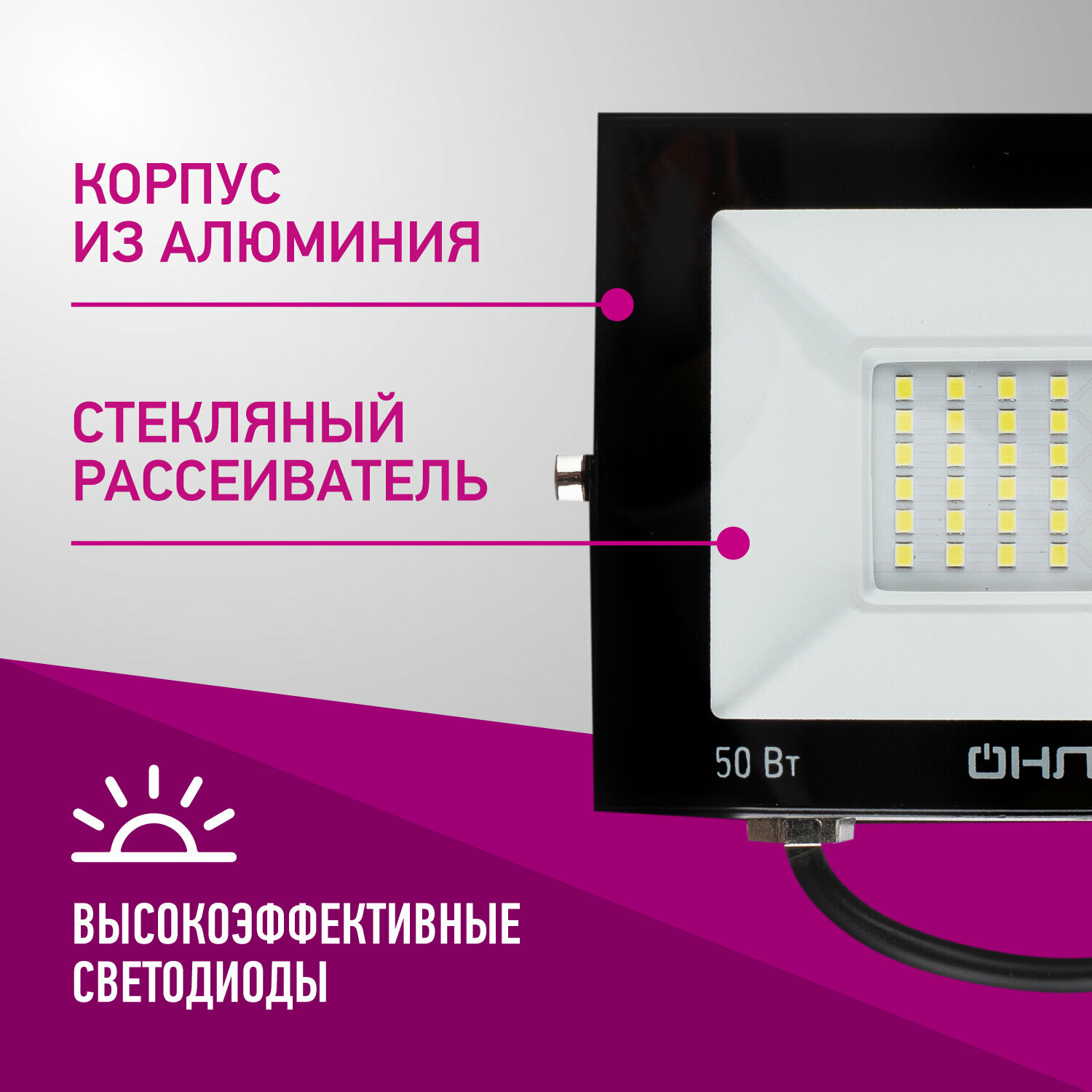 Прожектор светодиодный Онлайт OFL 6000К 50 Вт IP65 черный (71660)