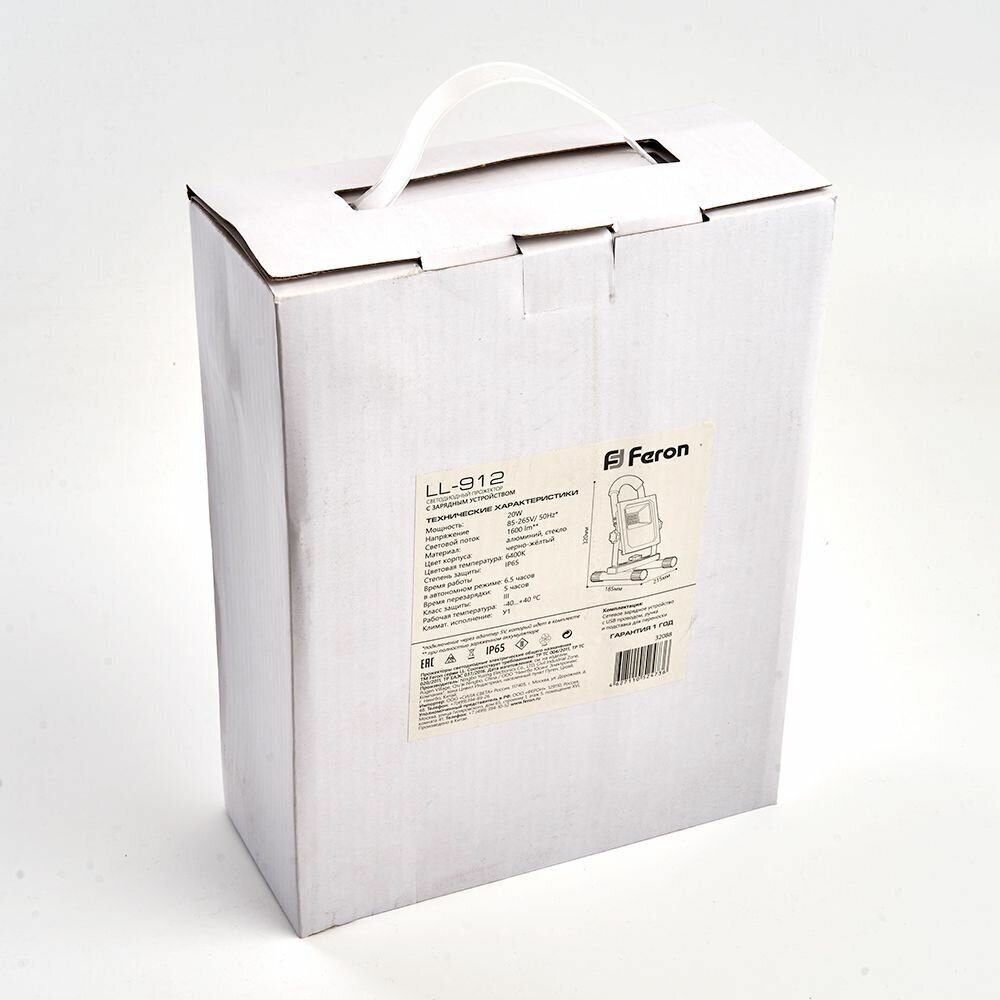 Прожектор светодиодный переносной с ручкой, с зарядным устройством (до) FERON LL-912, 20W, 6400К