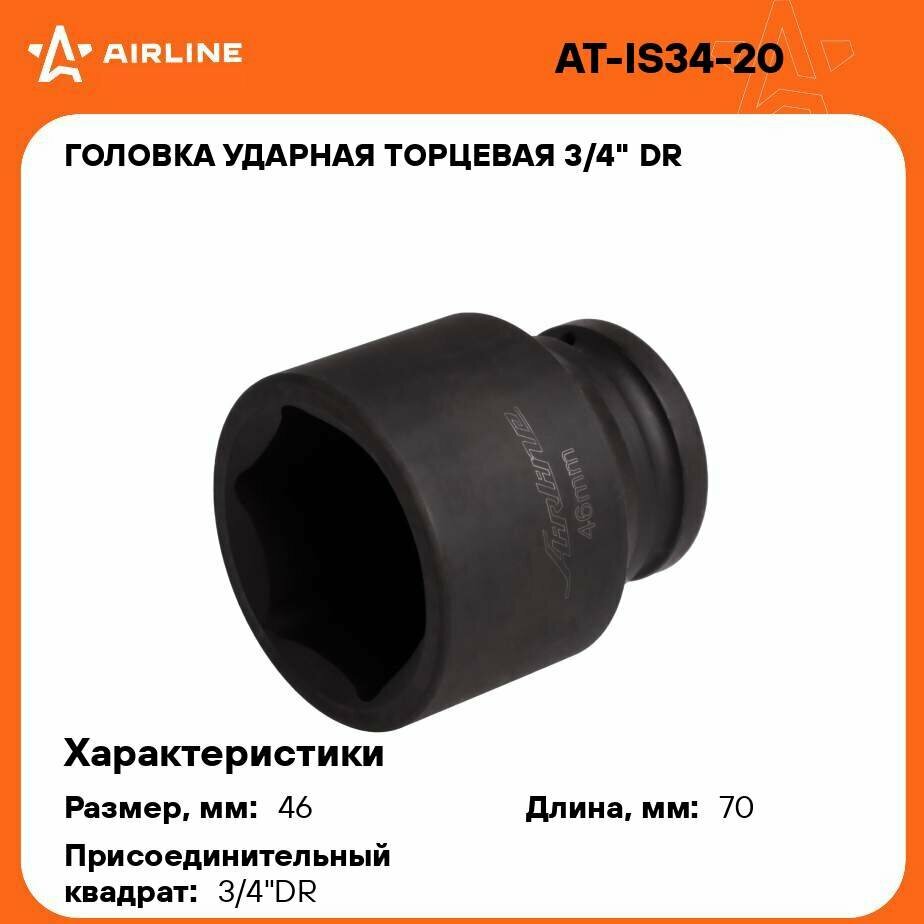 Головка Airline Ударная Торцевая 3/4" Dr Шестигранная 46мм AIRLINE арт. AT-IS34-20